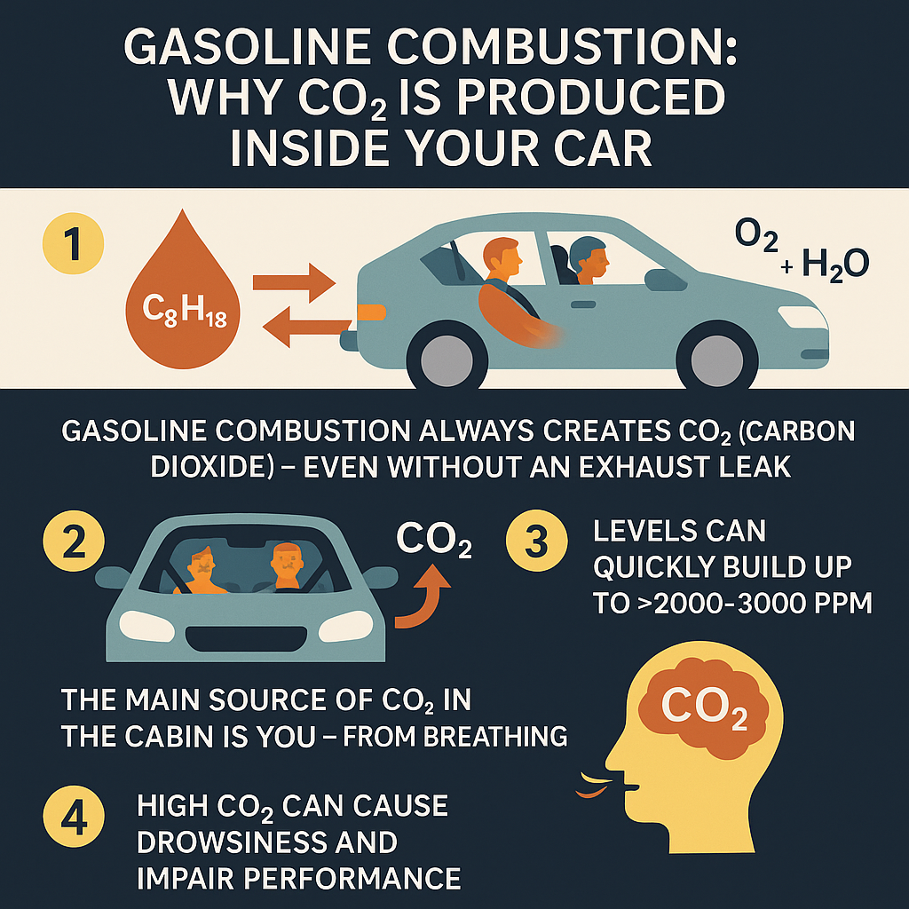 👉 Every car that runs on gasoline produces CO₂ continuously — even when everything is working perfectly.